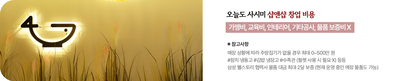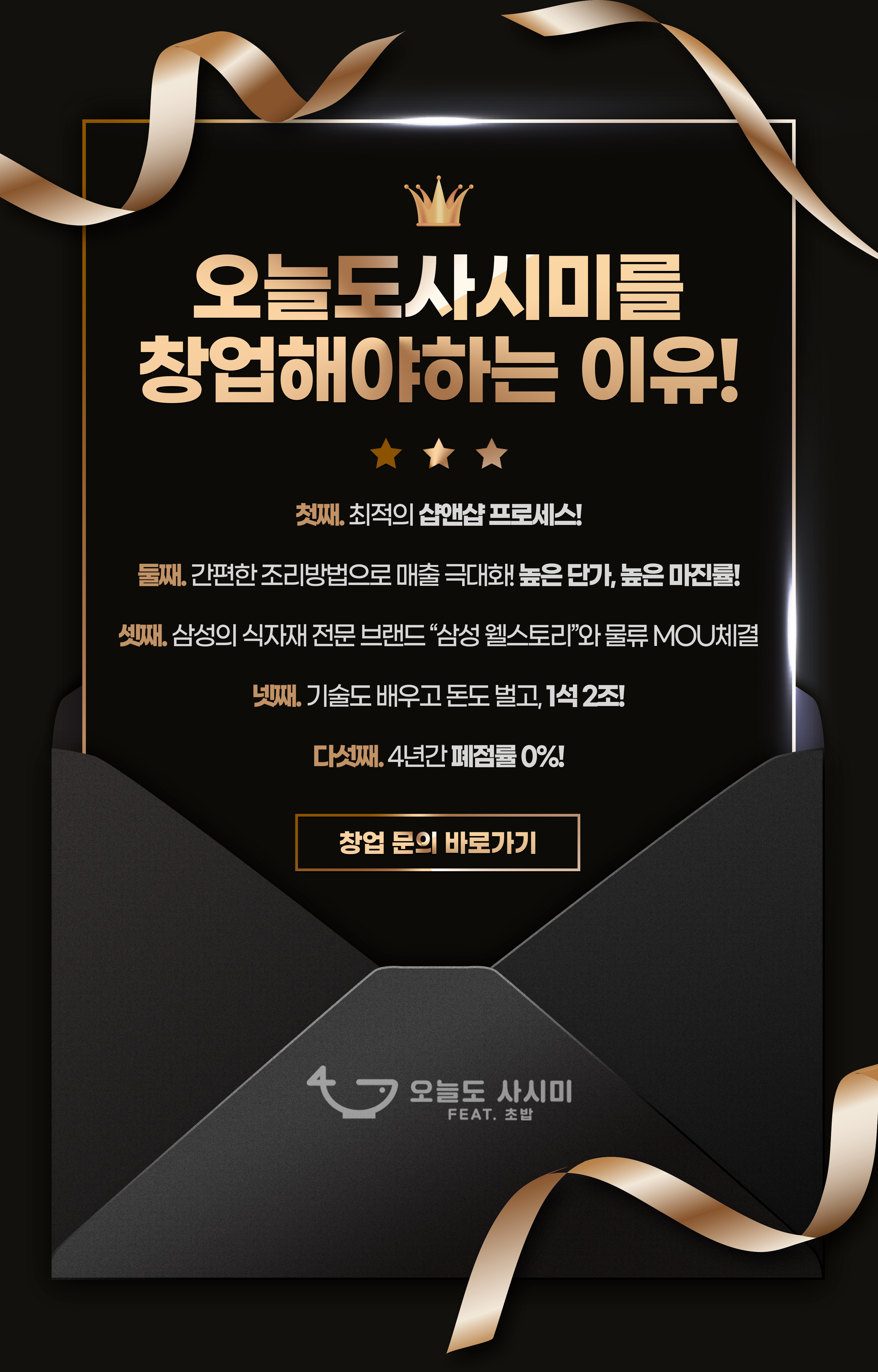 절대 흔들리지 않는 오늘도 사시미만의 압도적인 매출 시스템! 모든 고객에게는 만족감을, 모든 점주님에게는 성공으로 향하는 탄탄하고 빠른 지름길로 안내하겠습니다.